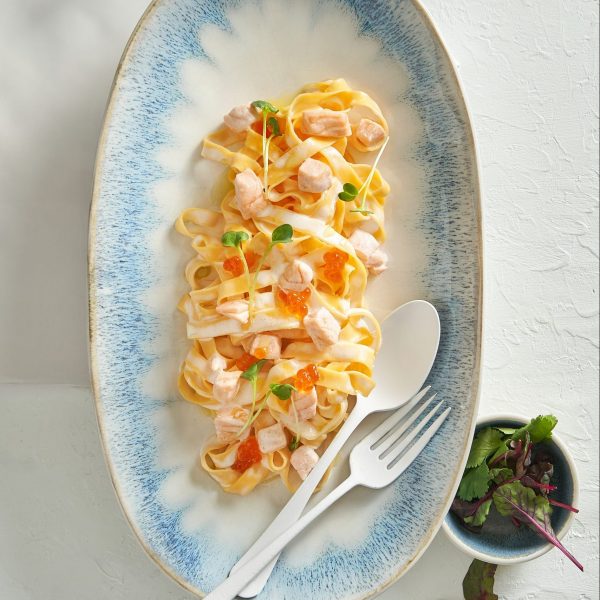 Тельятелле с неркой. Нежный сливочный соус и красная икра